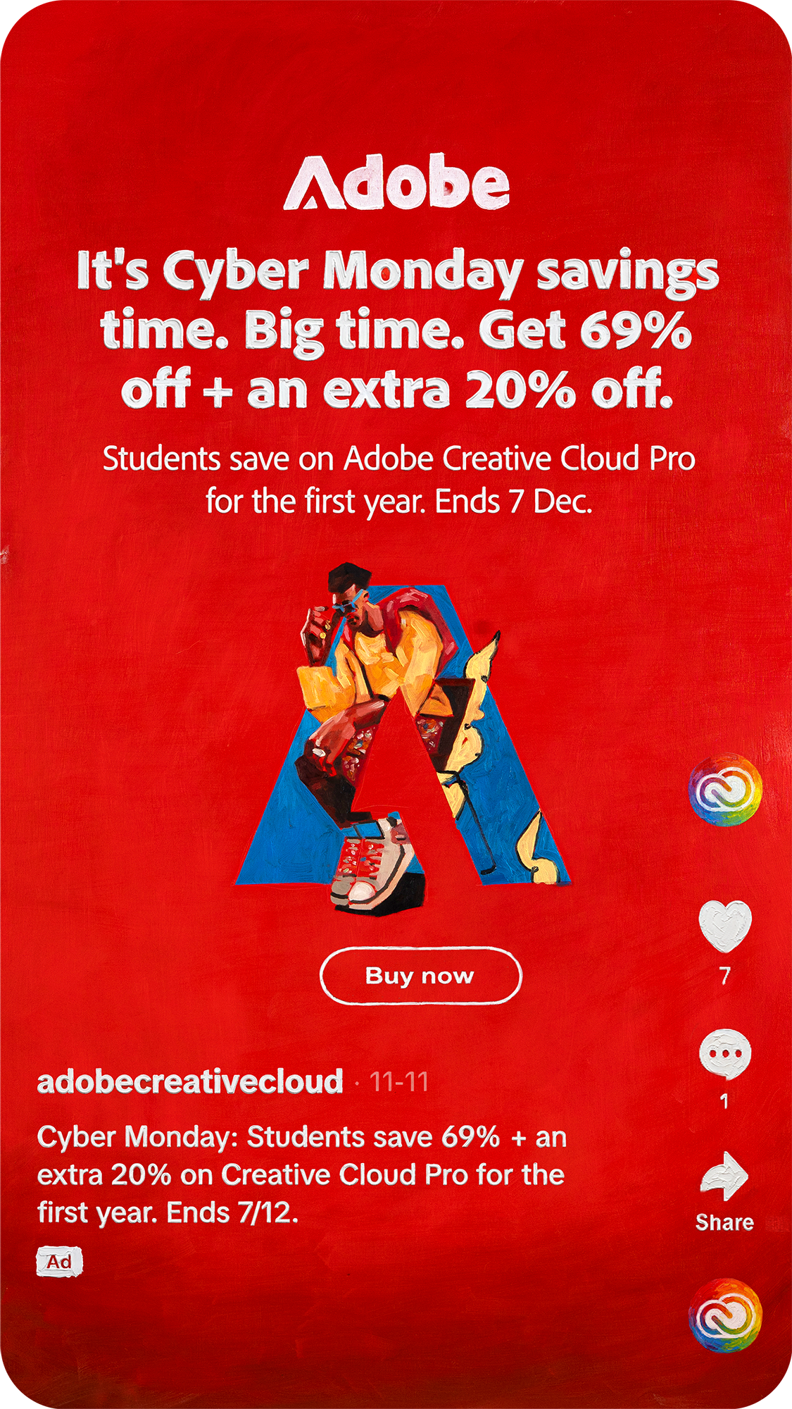 This painting reflects a persistent advertising campaign that saturated the artist’s feed across multiple platforms in the weeks before Black Friday.